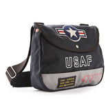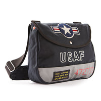 The USAF cross-body bag features historic USAF emblems that have been seen on military aircraft since the 1940s. Built with navy cotton twill, single-snap closure and an adjustable shoulder strap.