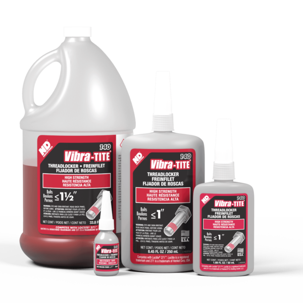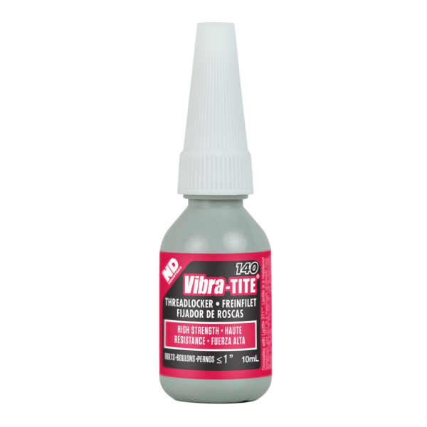 Vibra-TITE 140 is formulated to secure threaded components permanently and is compatible with aluminum, steel, plated, stainless steel, and unique alloy parts. Its high strength and anaerobic curing provide excellent temperature stability and solvent resistance.